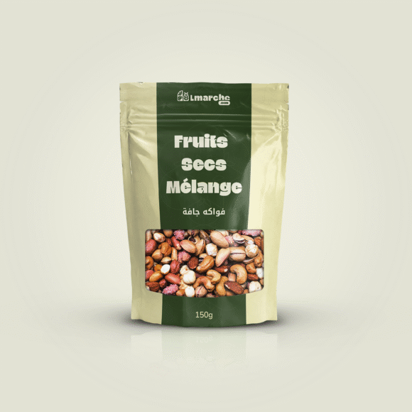 Savourez notre mélange de fruits secs – 150 g, sélectionnés avec soin pour leur qualité et leur goût exceptionnel.